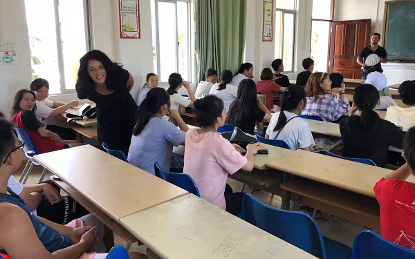 随后,在Rocío 和Alberto两名西班牙外教的带领下,新生们开始了与西班牙语的第一次亲密接触。外教们的热情活泼感染了全场的气氛,尽管都是西语零基础,短短几分钟下来,新生们不仅仅对西班牙语有了最直观的感受,还迅速学会了几句基本的问候语。大家纷纷表示,西班牙语一点都不难,只要肯张嘴就会说!