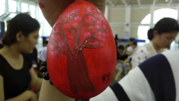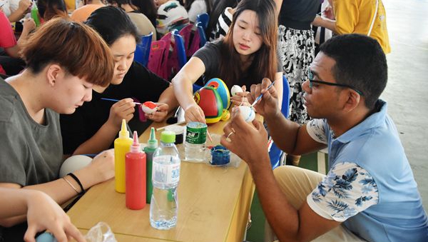 除了俄德法葡几个专业绘画复活节彩蛋外,西班牙语还进行了西班牙传统纸扇绘画。