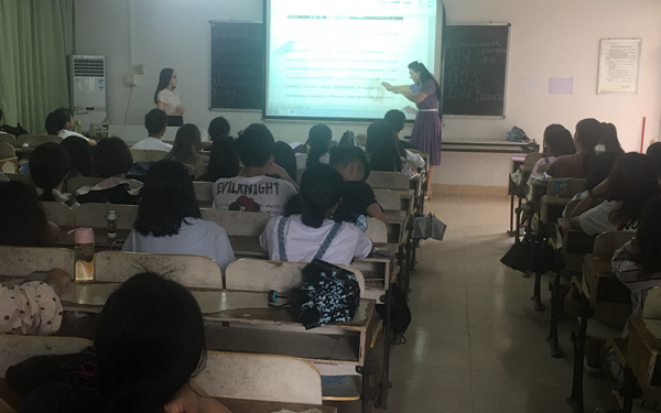俄语外教拉丽莎为学生们献上一场以“俄罗斯的城市”为主题的精彩讲座。她从衣食住行等方方面面详细介绍俄罗斯的重要城市及当地居民的生活。为了帮助大一的学生更好地理解,俄语教研室主任赵晨希在一旁进行辅助讲解。从学生们聚精会神的状态来看,这无疑是一场成功的讲座。
