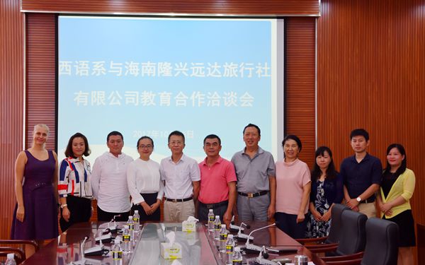 为进一步促进校企合作,提高学生就业率,10月26日西语系与海南隆兴远达旅行社有限公司举行了教育合作洽谈会,本次会议的参会人员有学院就业实训处处长许环碧,西语系主任高凤兰教授,曲志坚教授,西语系副主任刘茂媛以及海南隆兴远达旅行社有限公司商业总监刘新颖,旅游部经理仉长豹,计划调动部经理高山,商务部经理愈鑫雨,以及旅游部副经理斯维塔一行五人。会议由西语系副主任刘茂媛主持。