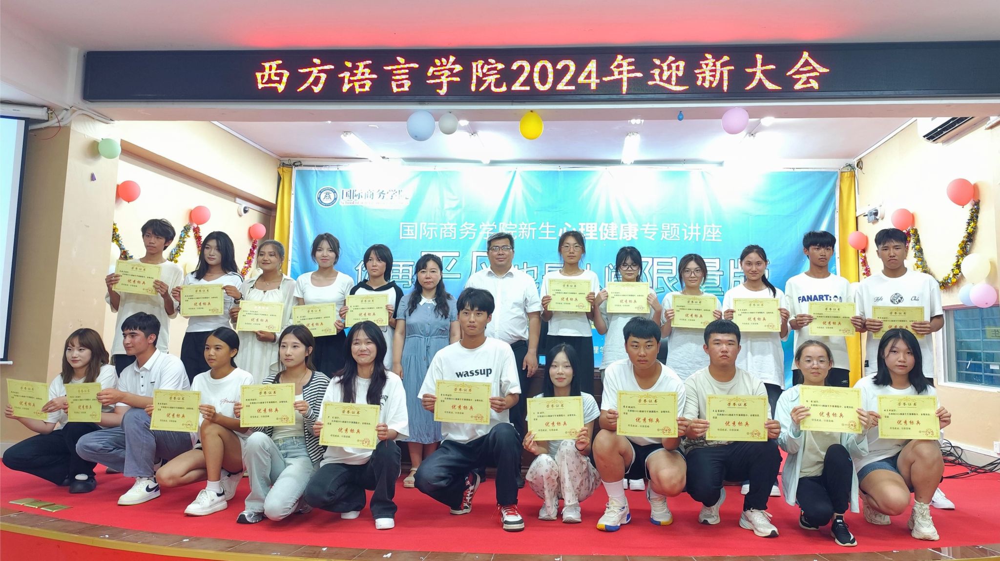 最后,符振忠副书记和刘茂媛院长为我院在2024级新生军训中荣获优秀标兵、军训先进集体奖、五星级文明宿舍的学生颁奖,本次大会在热烈气氛中圆满落幕。