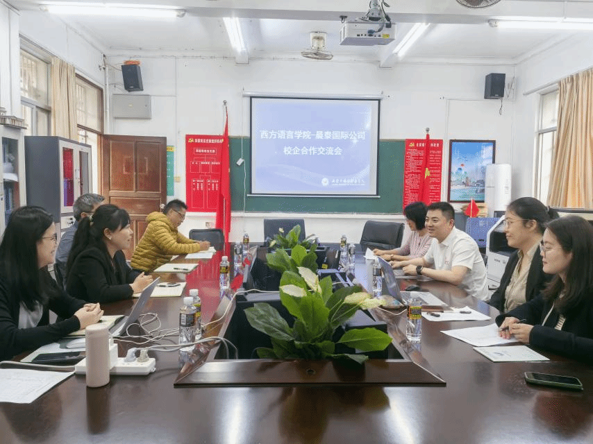 2025年3月31日下午,晨特国际公司代表与西方语言学院围绕“产教融合、人才培养、校企合作”主题开展深度交流座谈,双方就校企合作项目达成合作共识。西语学院副书记符振忠、院长刘茂媛、实习就业指导员及各教研室主任与晨特国际公司代表杨先亮共商育人新路径,标志着校企合作迈向纵深阶段。