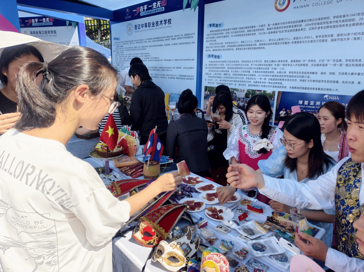 5月17日,以“一技在手,一生无忧”为主题的2025年海南省职业教育活动周在海口市云洞图书馆盛大启幕。全省57所中、高职院校齐聚一堂,展示职业教育成果。beat365党委委员、副校长苑德宇带队参加,西方语言学院积极协作,通过特色展位、互动体验、成果展示等形式,全方位呈现我院在人才培养、教育教学、校企合作及国际交流领域的突出成就,吸引众多参观者驻足,获得广泛好评。