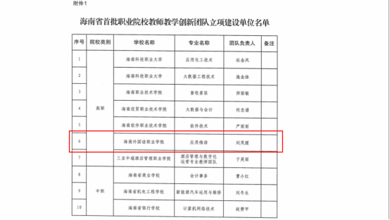 喜报!【双高建设】我院应用俄语专业教学团队入选海南省首批职业院校教师教学创新团队