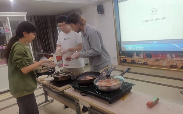 “高端的美食往往只需要朴素的烹饪方式...”伴随着音乐,还有同学们的欢声笑语,一道道令人垂涎欲滴的意大利美味诞生。