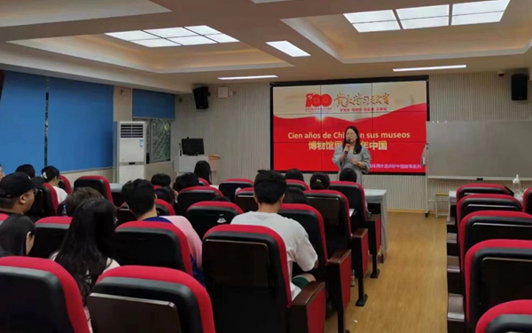 西班牙语教研室精心组织策划了题为《博物馆里的百年中国Cien Años de China en Museos》的党史专题活动。该活动是由何月老师主持,黄小恒老师主讲。本次活动以中国共产党历史上重要的历史事件为主题的四个博物馆:嘉兴南湖革命纪念馆、遵义会议博物馆、延安革命纪念馆、西柏坡革命纪念馆。黄老师向同学们通过双语纪录片,带领同学们一起回顾博物馆背后的历史人物、事件及其在中国共产党发展史上的重要意义。讲座全程采用中西语双语模式,图文并茂,让学生既重温了历史,也学习到了相关的语言知识。
