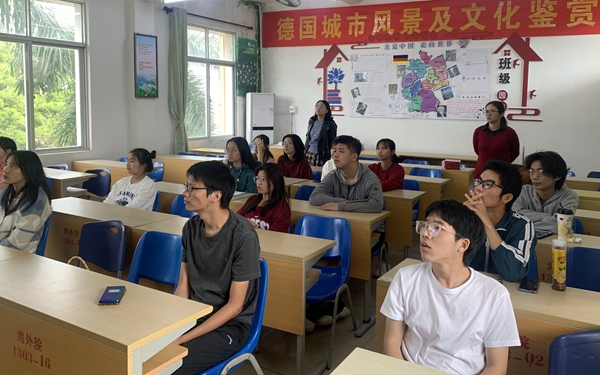 25日上午,应用德语班大一和大二的学生在杨颖老师的带领下,进行了《德国城市风景及文化鉴赏》的发表活动。活动以学生为主体,每个学生进行时长约10分钟左右的主题发言。主题均与德国城市的风土人情有关,如地理位置,饮食,节日,文化等。每位同学都用心制作了精美的PPT,并找到相关短视频,把他们所探索到的新知识与同学们分享。整个发表过程,学生们都积极与台下的同学互动,通过这次活动,大家增长了不少关于德国的见识,也锻炼了他们上台展示的胆量和搜索资料,汇总资料的能力,更在无形中加深了他们对德国在饮食,节日,文化方面的印象。