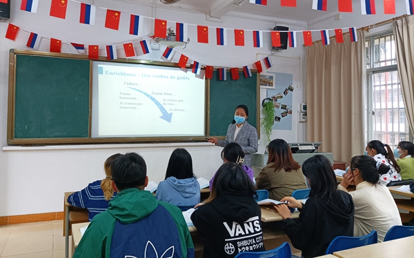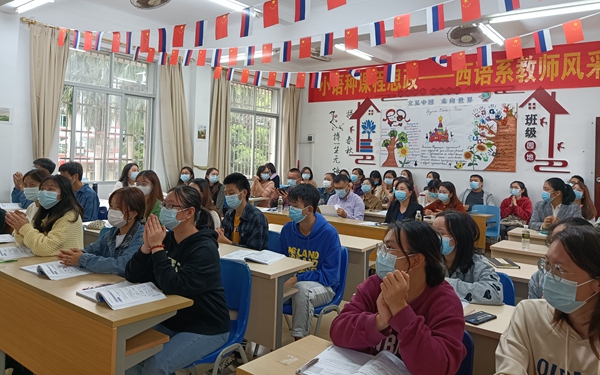 图1为西语系“小语种课程思政”教师风采展课堂一瞥