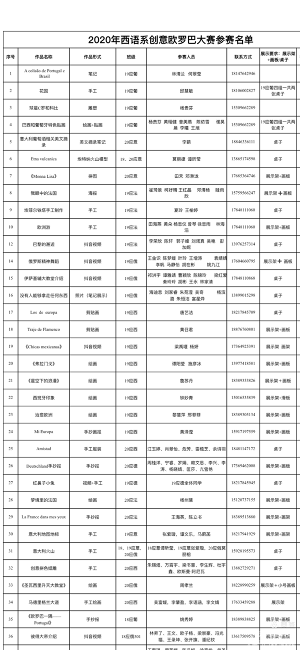 据最终提交的作品统计,共有38个参赛小组共135人次参赛,他们分别来自西语系2019和2010级15个班级,参赛作品形式丰富多样,造型精致美观,创意十足。