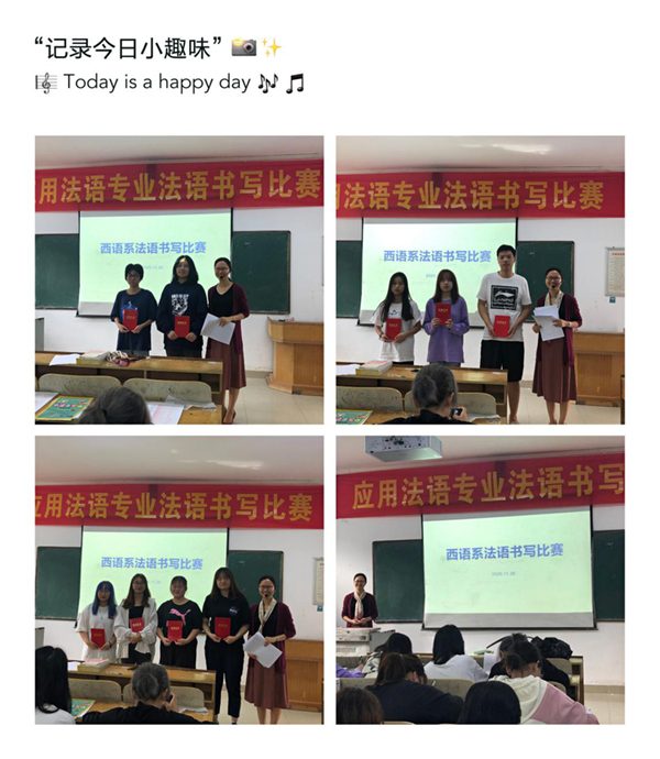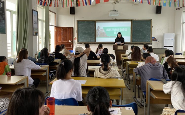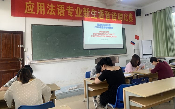 西语系6个语种都开展了语音语调比赛,专业教师担任评委,比赛异常激烈,每个专业角逐了一二三等奖。