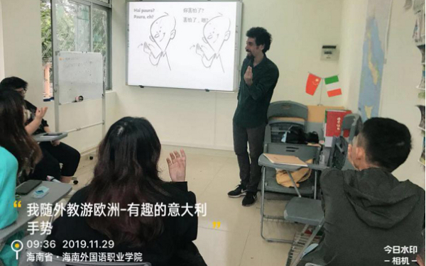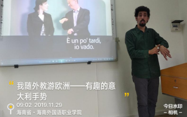 意大利人在说话时常常喜欢用各种手势来表达自己的情绪,对他们来讲,一个手势胜过千言万语,因此“手”又被称为意大利人的“第三张嘴”。今天,应用意大利语班级举行了一场妙趣横生的活动,外教马可老师为同学们介绍了丰富有趣的意大利手势,观看有趣的手势视频、图片,以及外教的亲自示范讲解等别具一格的活动内容使同学们乐在其中。