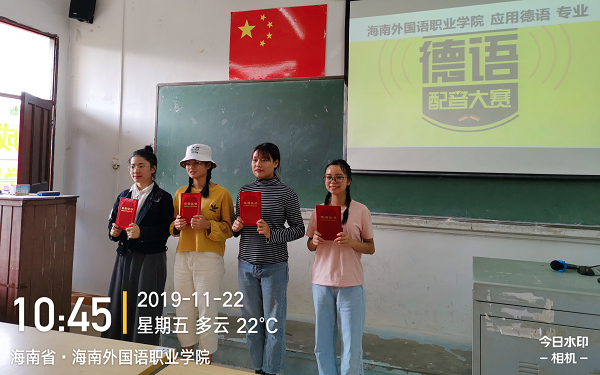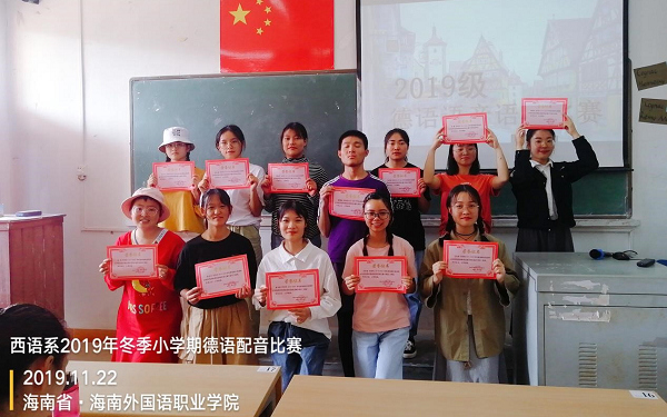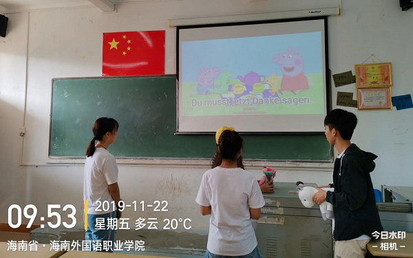 除了语音语调比赛,应用德语专业开展了第三届德语配音比赛,参加比赛的是18级和19级应用德语班的同学。