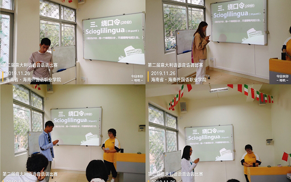 应用意大利语专业第二届意大利语语音语调比赛正式拉开帷幕,参加比赛的是19级的小意呆们。今年的比赛分为四个环节,分别是自我介绍,速读单词,绕口令及文章朗诵。