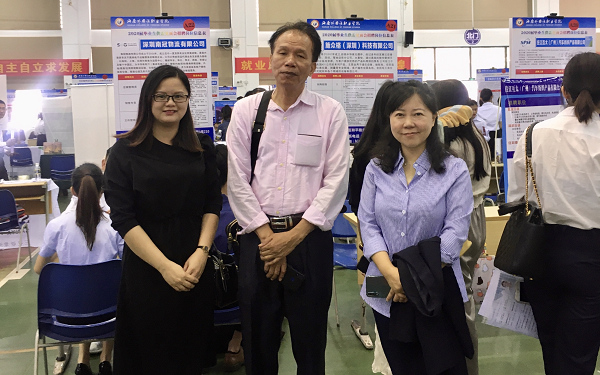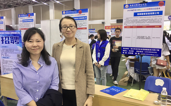 海南省人力资源开发局调研员黄基胜处长莅临我院2020届毕业生招聘会现场指导工作,并与我院西语系副主任刘茂媛和就业指导员潘虹禅老师交流了解毕业生就业见习等情况。