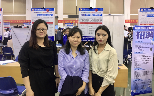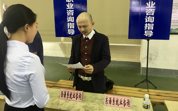 我系非常重视毕业生的就业工作,无论西语系副主任刘茂媛、还是系部就业指导员潘虹禅老师和毕业班辅导员符达佳老师都到招聘会现场了解企业和学生应聘情况,并指导学生应聘。