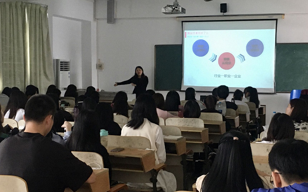1118日,博鳌华美达酒店总经理助理、人事经理黄惠兰经理来我院为我系应用俄语专业2020届毕业生作专场宣讲会。黄经理分别从“项目简介”、“招募岗位”和“培养计划”三个方面进行宣讲。