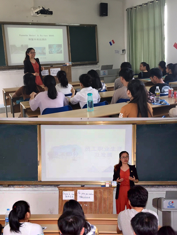 首先由邢总监介绍酒店情况,然后由前厅部杨经理给同学们详细介绍需要俄语专业学生的工作岗位;最后是问答环节,两位宣讲嘉宾耐心解答同学们提出的问题。