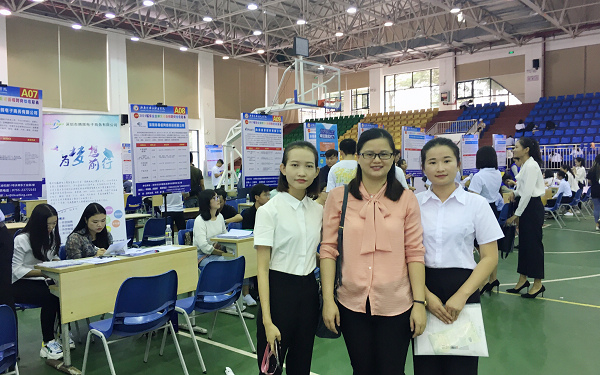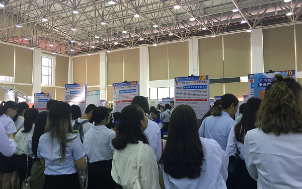 我系邀请的跨境电商和外贸类的企业非常受同学们欢迎,展位前早早就排满了等待面试的毕业生。
