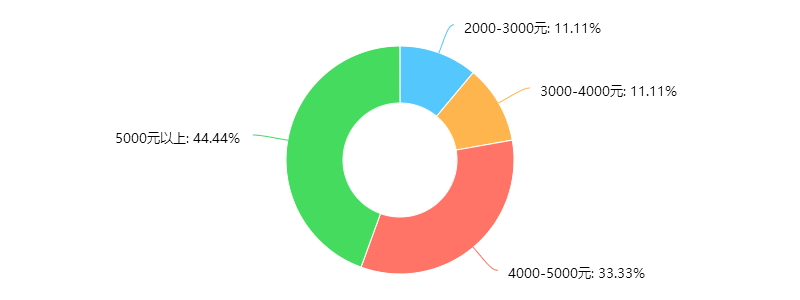 7、企业给我院西语系(应用俄、德、法、西、葡语专业)的毕业生在实习期提供的月均工资主要集中在3000-4000元区间,其次是4000元以上;但转为正式员工后的月均工资,有44%的企业表示能达到5000元以上,33%的企业表示能达到4000-5000元区间。如下图所示: