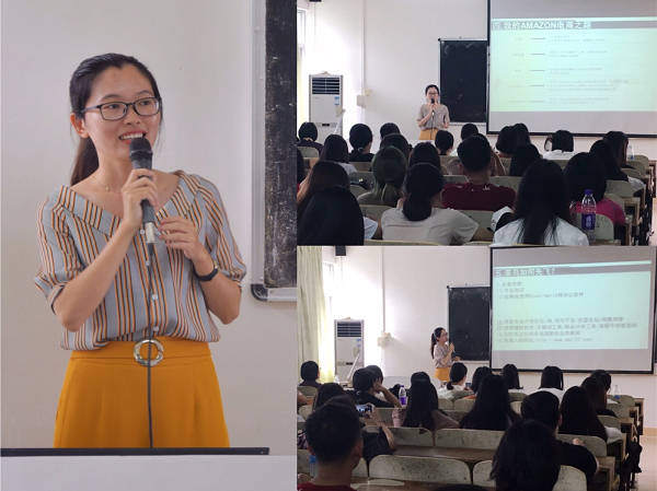 林老师自2008年起就开始接触跨境电商行业,曾担任ebay、Amazon等平台的运营主管,并曾带领团队自主创业,熟悉跨境电商平台规则及政策,对跨境电商产品的开发及销售有着丰富的经验。在这次分享会上,林老师不仅详细介绍了传统外贸与跨境电商的区别、跨境电商出口流程,而且还现场教同学们如何操作Amazon平台,另外还指导学生如何回答跨境电商企业的面试问题。分享会结束后,同学们还觉得意犹未尽,不少同学主动向两位老师提问相关问题。