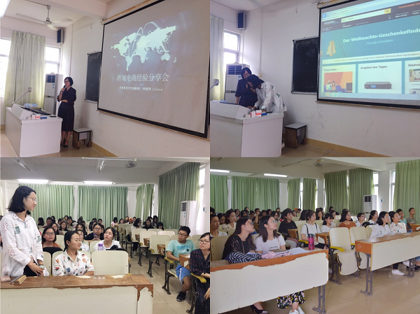 黄老师给同学们介绍了什么是跨境电商、主要的跨境电商平台、知名电商公司,并分享自己如何从一名普通的客服一步步提升为小语种市场组长的成长历程,还教同学们如何“笨鸟先飞”,告诉同学们在跨境电商工作中应掌握的一些必备技能和小窍门。