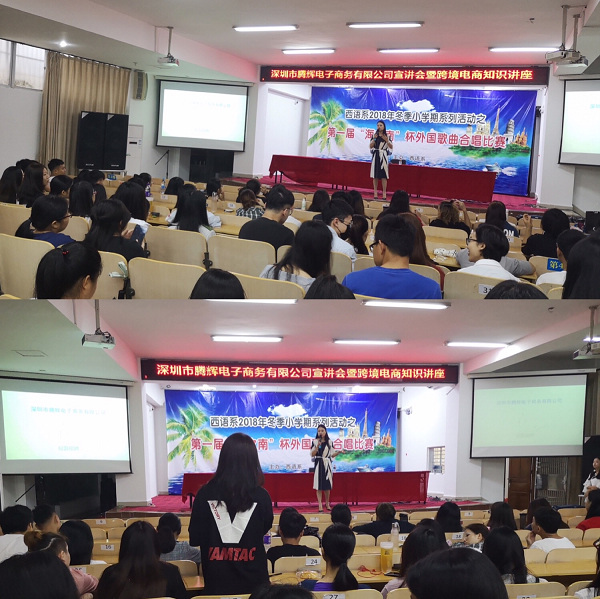 11月15日上午8点,我系在学院多功能报告厅给2019届全体毕业生召开深圳市腾辉电子商务有限公司宣讲会暨跨境电商知识讲座。宣讲嘉宾是深圳市腾辉电子商务有限公司招聘主管毛主管。本次宣讲会由潘虹禅老师主持。