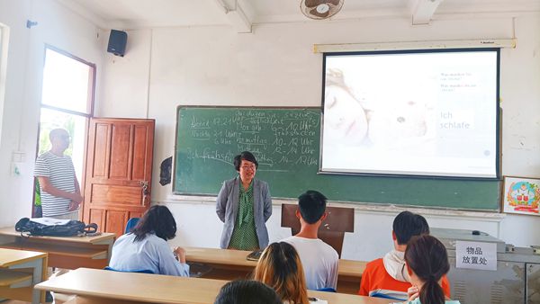 3月14日下午,学校党委委员、副校长邓颖颖一行在西方语言学院刘茂媛副院长、顾大育副书记的陪同下走进德语外教Dr.Alami的《德语视听说》课堂,和应用德语专业的教师们一起听课。课后,邓颖颖副校长与师生亲切交流,谈了听课体会。邓副校长对Dr.Alami的教学设计以及课堂管理给予充分肯定,并表示希望学生珍惜与外教学习的机会,学好德语为海南自贸港建设做出贡献。