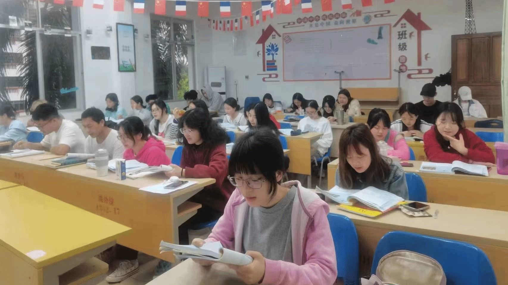 清晨的微风吹响了树叶,同学们早已顶着晨光陆续到达教室,捧书诵读,朗朗书声汇成清晨校园中最美的风景线。早读活动开展一个星期以来,各班出勤率高,读书氛围好,学生精神面貌佳,充分体现了我院学生端正的学习态度和优良的学风。“盛年不重来,一日难再晨”,同学们纷纷表示:早读活动的顺利开展,对自我意志和品格的磨炼有很好的引导作用,对提高外语口语能力有很大的帮助。