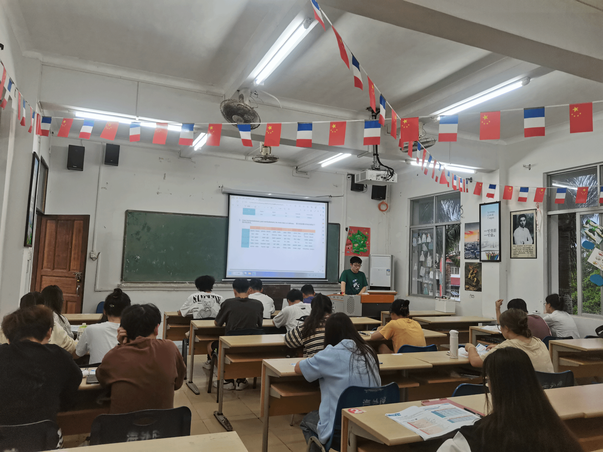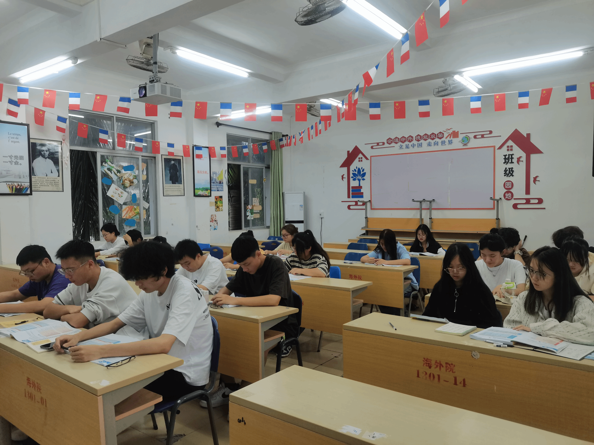 各班同学在带读学生领读下大声朗读外语。俄语的神秘,德语的韵味,法语的浪漫,西班牙语的热情,意大利语的优雅,葡萄牙语的活力,这些声音交织在一起,就像一首美妙的交响曲,萦绕在清晨校园里,让人心潮澎湃。每一个音节和旋律都透露出学生们对知识的渴望和对未来的期待。