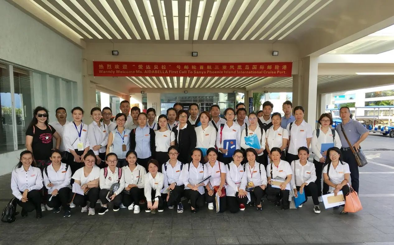 应德专业师生在三亚接待了“爱达贝拉”号邮轮的德国游客,担任翻译工作