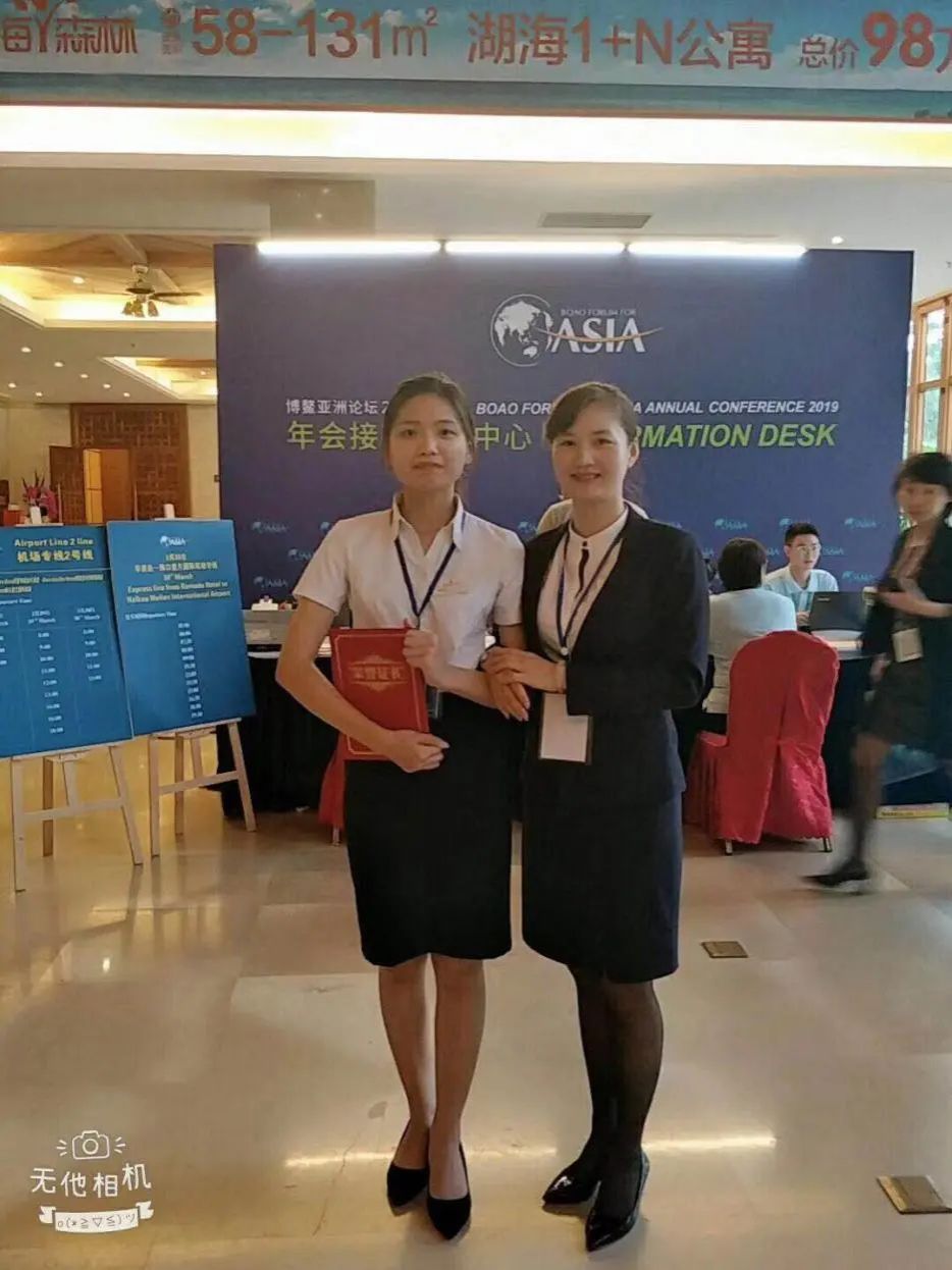 应德学生黄欣婷(左)在博鳌亚洲论坛担任翻译工作
