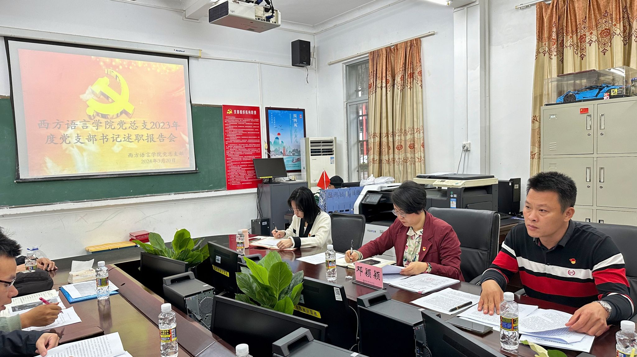 西方语言学院党总支部召开2023年度党支部书记抓党建工作述职评议会