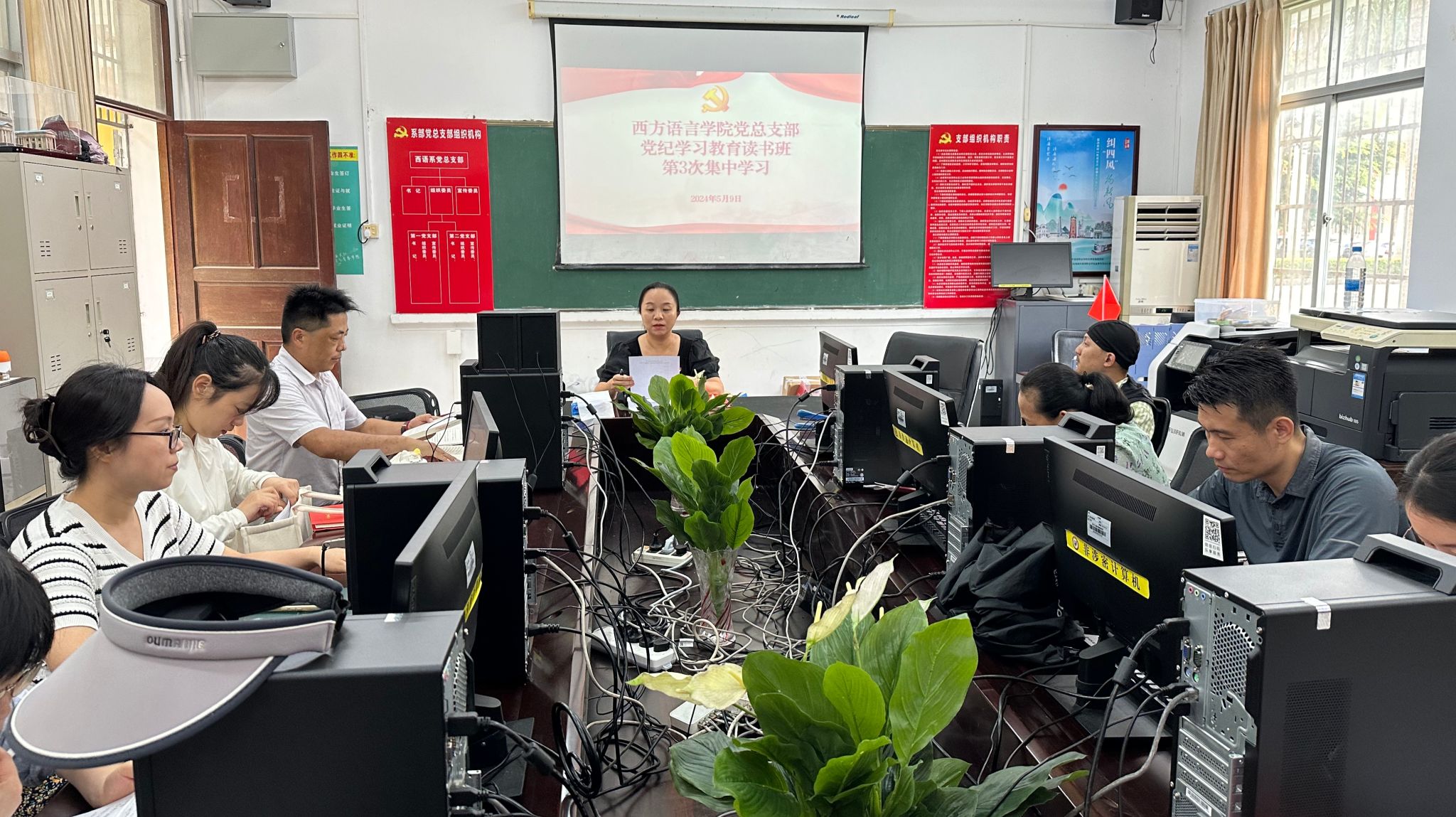 5月9日下午,西方语言学院党总支在学院会议室召开党纪学习教育读书班第三次集中学习活动。会议由党总支组织委员史丹娆同志主持,西方语言学院全体党员教师参加会议。