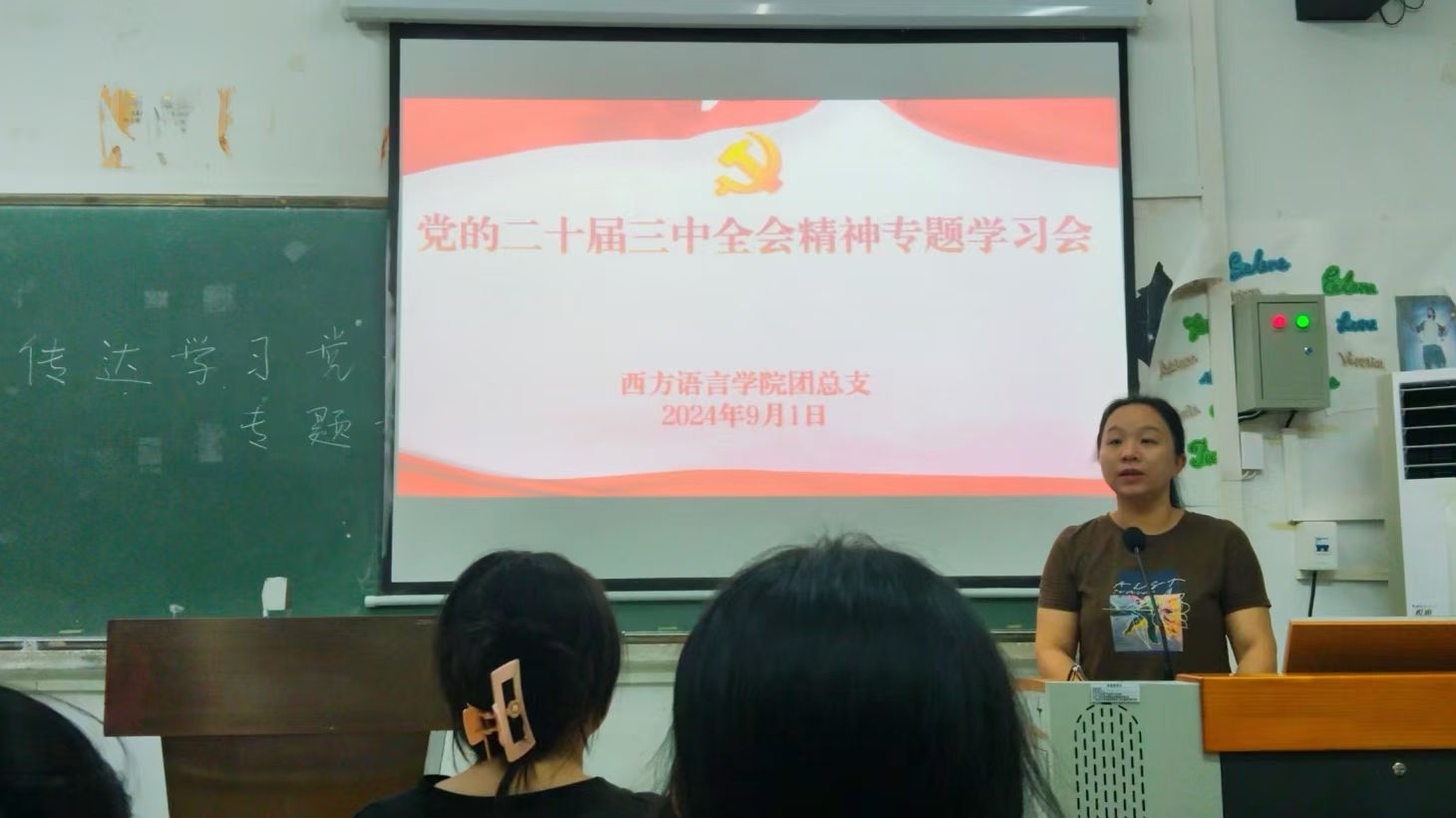 中国共产党第二十届中央委员会第三次全体会议(简称党的二十届三中全会)于2024年7月15日至18日在北京举行。为深入学习宣传党的二十届三中全会精神,深入学习领会习近平总书记关于全面深化改革的重要论述,9月1日晚上,在西方语言学院党总支的组织领导下,学院团总支、全体团支部召开学习贯彻党的二十届三中全会精神专题学习会。