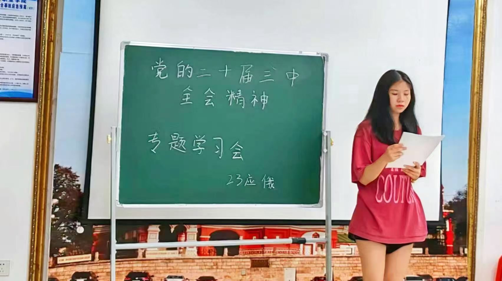 第二场学习会是各班团支部在班级中进行,同学们积极学习党的二十届三中全会精神,并展开了热烈的讨论。学习会上,同学们讨论的话题主要聚焦于党的二十届三中全会精神的指引以及在海南正加快自贸港建设的背景下,作为一名高校学子,未来要如何参与到自贸港建设中,如何发挥自己作为外语专业学生的长处,用语言搭建世界文化的桥梁。
