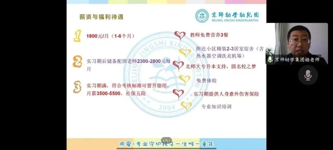 为促进毕业生高质量就业,同时满足用人单位用人需求,近期,学前教育教研室邀请多家用人单位举办线上及线下校园招聘宣讲会。