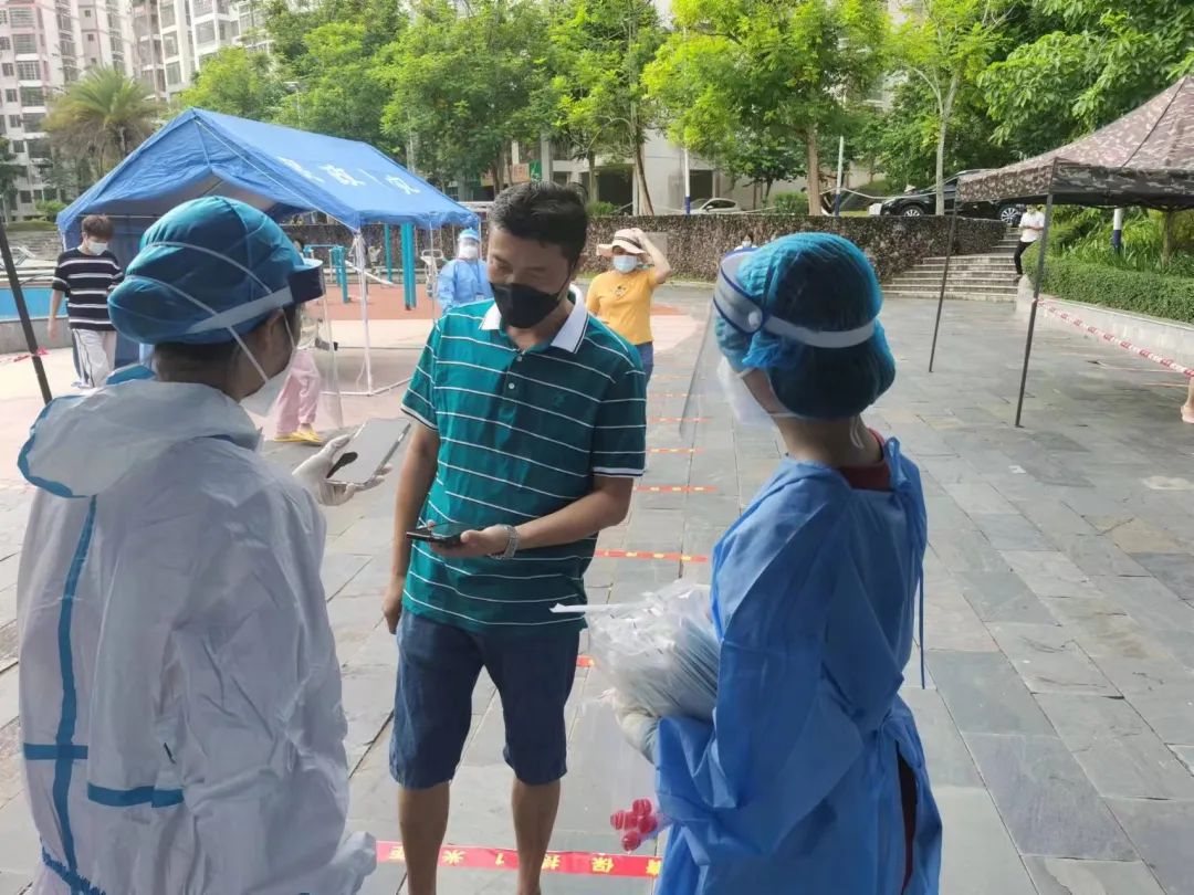 在工作现场的每一个人都很好,让我觉得这个疫情并没有想象中那么恐怖,更多的是让大家更团结了。每次到现场时,领队都会嘱咐我们,要先保护好自己,才能保护好别人,如果连我们都病倒下了,该怎么守护好我们的人民。每一天都会有新的志愿者投入到这场“战疫”,大家都在努力地抗击这次疫情。很多地方的医护人员来支援我们,真的很感谢他们的到来。在休息的时候,我和我的搭档与从四川来支援的医护小姐姐聊天,他询问我们:“你们都还是大学生吧?”我们回答到:“是的”他边微笑边说“那你们很厉害也很勇敢呀!”当时我听到这句话时,感到非常感动和开心。