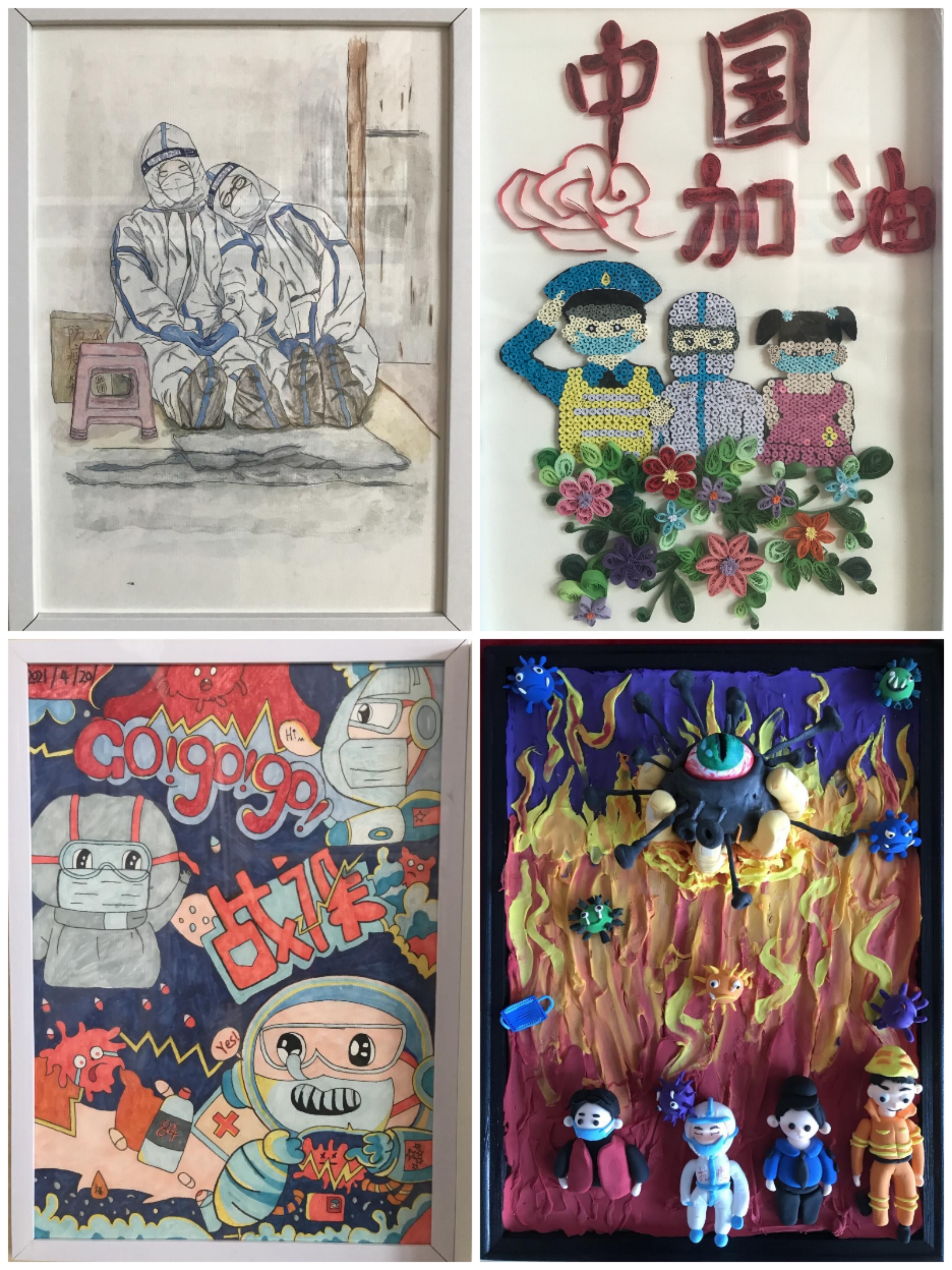 在“抗疫”主题美术与手工大赛中,同学们用灵巧的双手记录疫情期间坚守一线的工作者、志愿者感人画面,传递了浓浓人文关怀和情感温暖。200余个参赛作品形式多样,包含彩泥、剪纸、折纸、水彩画等等。这些作品制作精良、创意新颖,充分展现了新时代大学生的责任与担当,激发并凝聚起打赢这场防控阻击战的强大精神力量。
