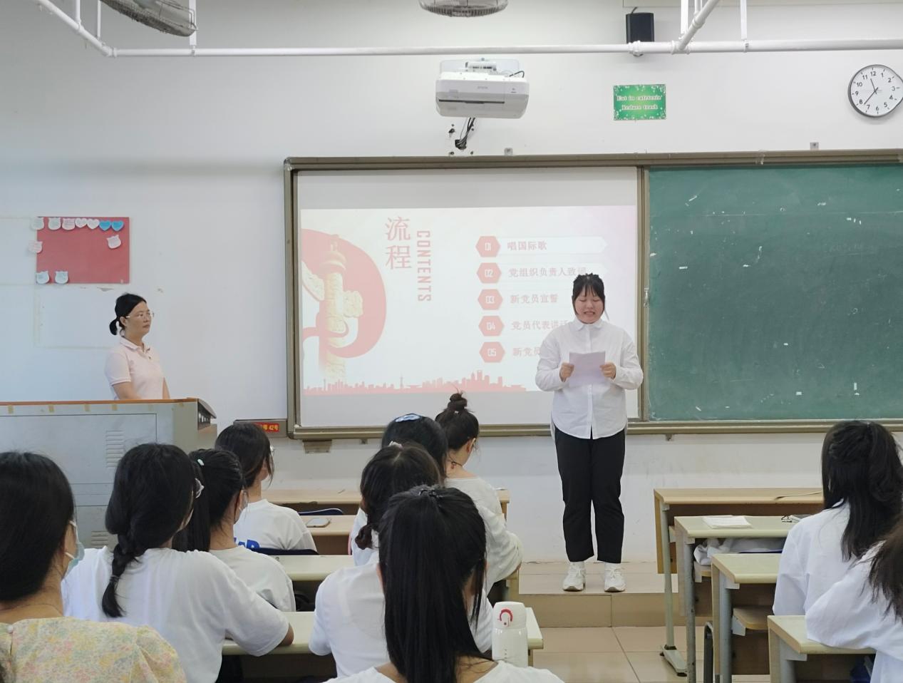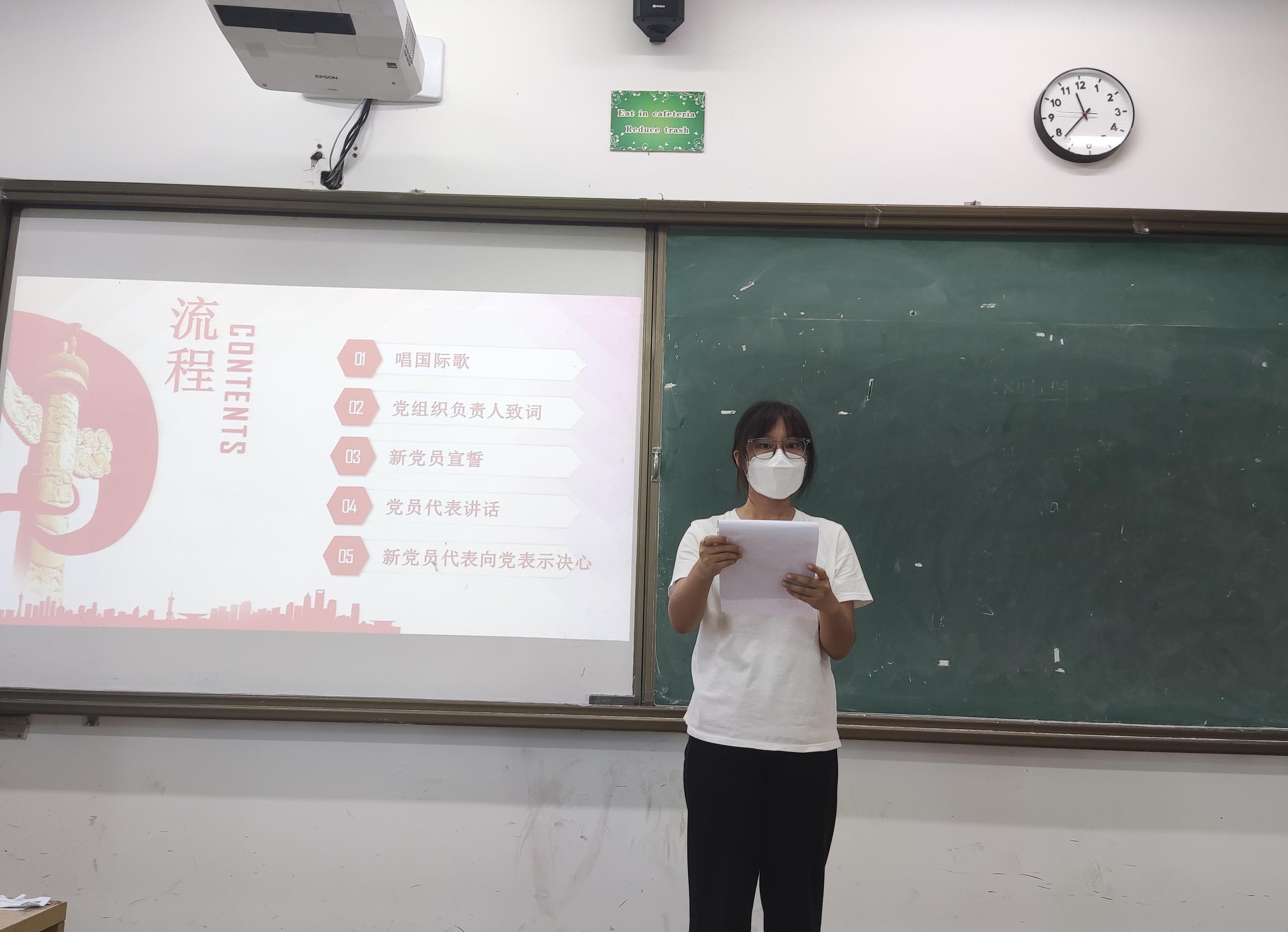 △学生新党员代表卢萃萃代表新党员向党表决心