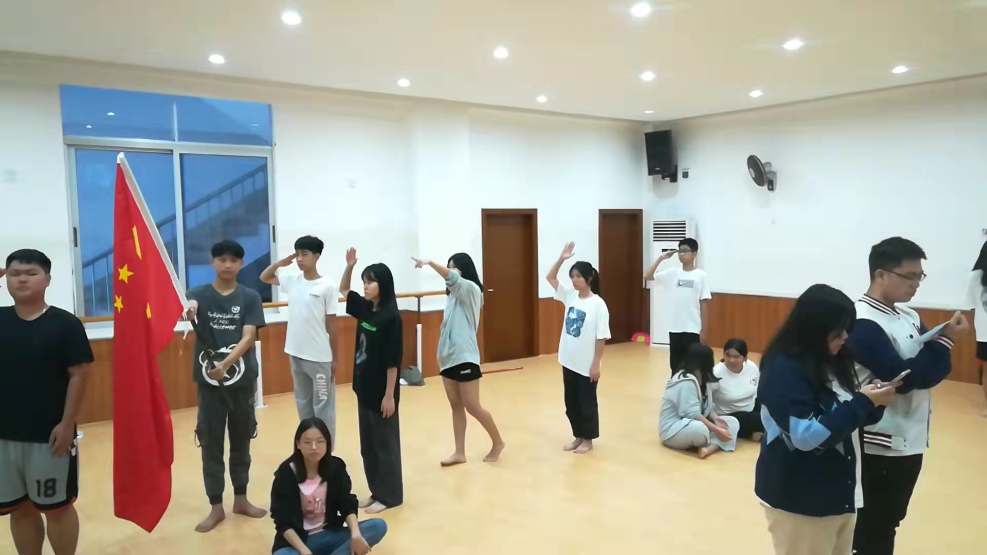 △同学们辛勤排练的背影