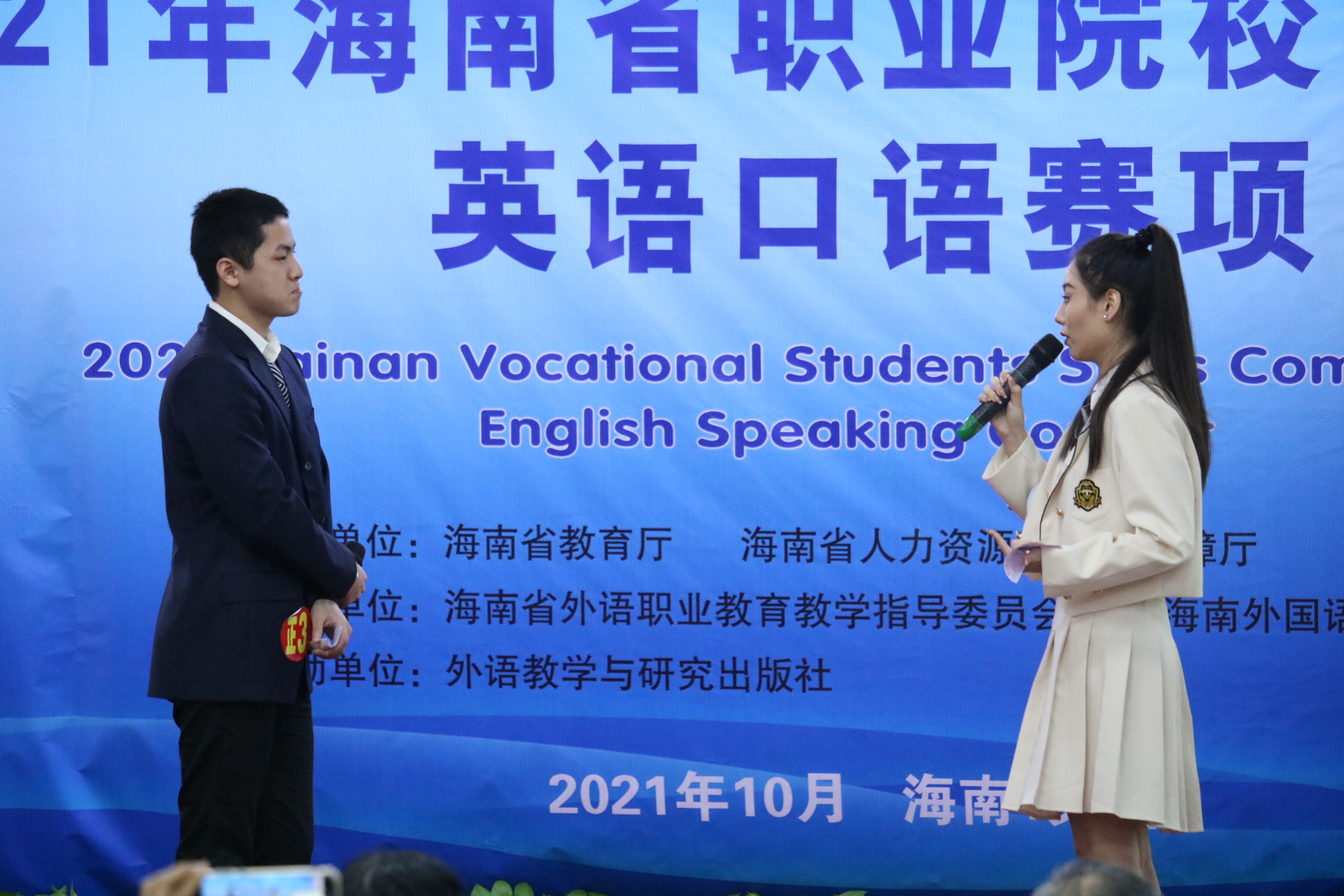 此次比赛为我省高职院校学生提供了一个自我能力展示且公平公正竞争的平台,旨在提高学生对英语技能运用的整体能力,丰富学生的文化内涵,为全面提高人才培养质量夯实基础,整体提升高等职业教育英语教学水平,为海南自由贸易港建设添砖加瓦、培养人才。