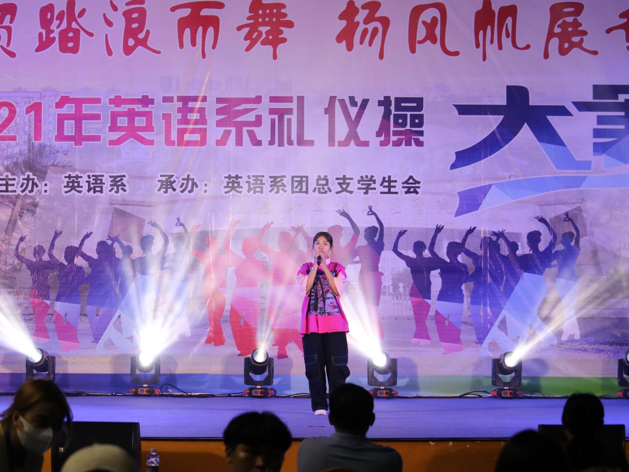 为进一步提高英语教育专业学生的职业素养,营造积极向上、健康文明的校园文化氛围。11月14号晚,英语系在体艺馆举行“迎自贸踏浪而舞、扬风帆展专业素养”礼仪操大赛。英语系党总支副书记吴清晖、英语系副主任张清萍、部分班级辅导员及班主任出席此次大赛。英语教育专业教研室主任郑一新副教授、应用英语专业教研室主任李朝霞副教授、基础教育教研室主任陈春妮副教授及学前教育专业教研室主任杨丹老师担任本次大赛评委。