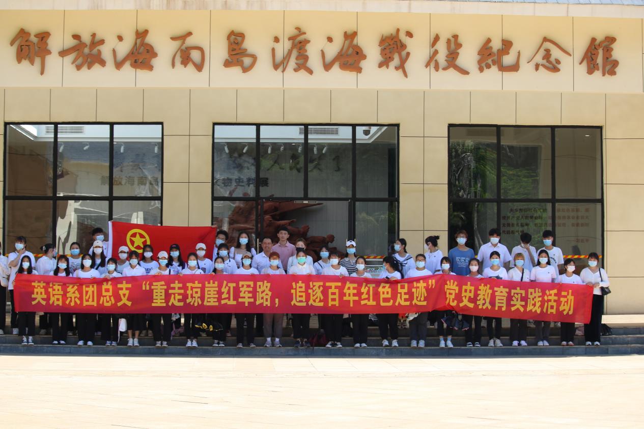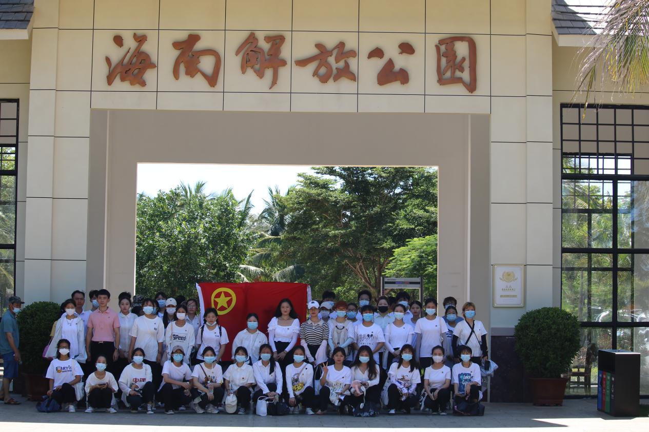 为弘扬爱国主义精神和坚定初心使命,深入学习贯彻习近平总书记在党史学习教育动员大会上的重要讲话精神,将党史学习教育走深走实。2021年6月19日,英语系团总支开展“重走琼崖红军路,追逐百年红色足迹”党史教育实践活动,在英语系刘力鹏、张瑞两位老师的带领下,团学干部一行48人来到临高县海南解放公园参观学习。