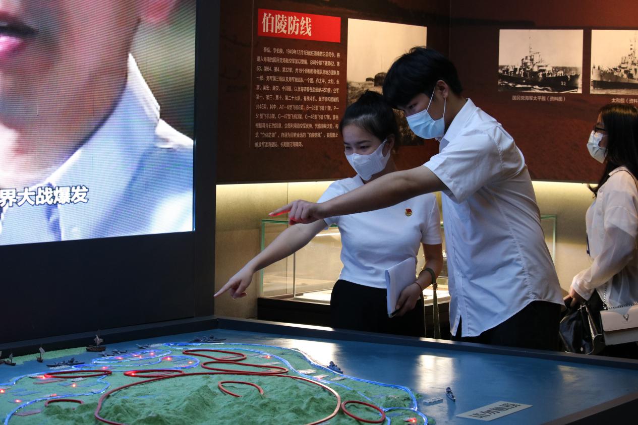 在解放海南岛渡海战役纪念馆中,团学干部们安静有序的参观着。