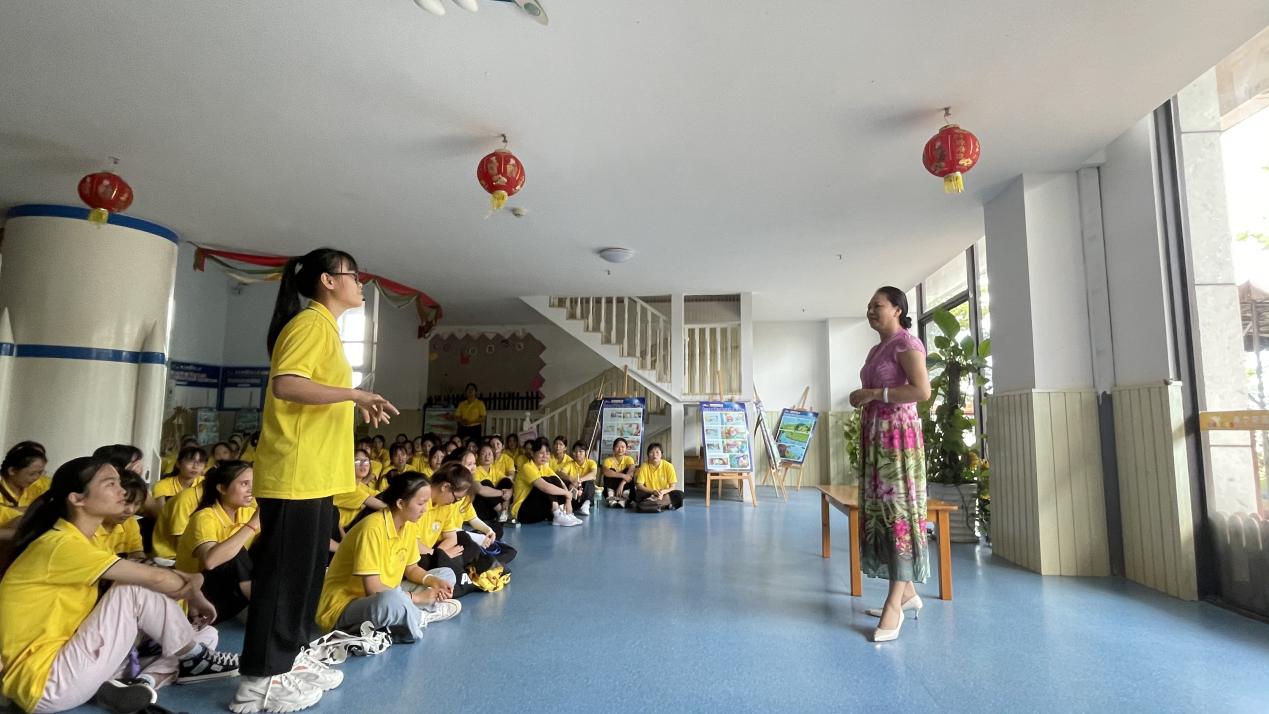 为了给同学们做一次良好的教育教学引领示范,唐园长给同学们安排了一节外教课。在这节课堂活动中同学们学会了如何在上课前跟小朋友们互动,如何通过各种方式把小朋友们的注意力都集中在教学内容中。这节精彩的外教课充分体现了希尔斯幼儿园以幼儿为主体的教育教学理念。
