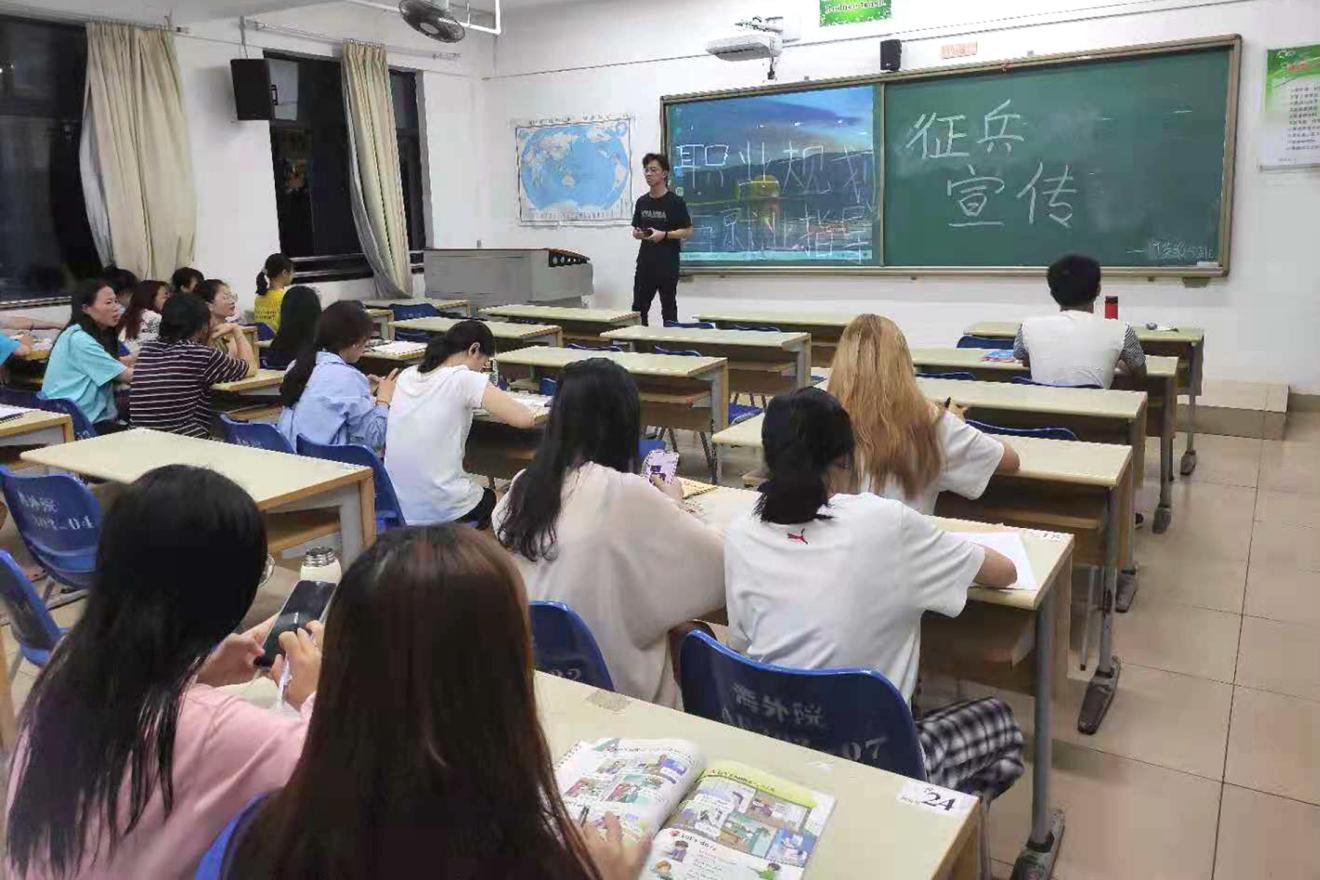为了提高同学们征兵入伍、报效祖国的思想认知,鼓励我系学生积极参与应征入伍。5月11日-13日,英语系组织各班召开了征兵宣传主题班会。