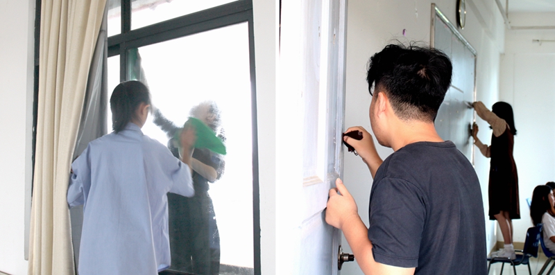 同学们以最佳状态投入到繁重的劳动中,充分发扬主人翁精神,将爱校、护校、净校、美校的义务劳动进行到底,在此次大扫除活动过程中,各班同学认真负责,做到了多角度、多方位、力争不留死角、不留盲区,不仅将清理工作落到了实处,同时也充分展现了大学生的青春活力与志愿精神。