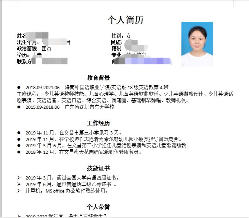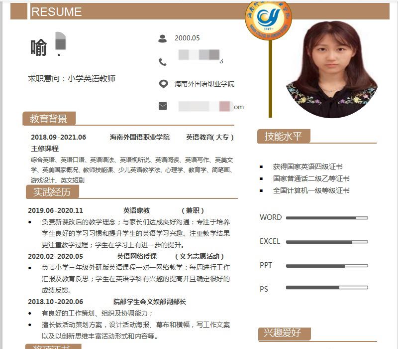 最后,布置同学们写一份自荐书. 以下是个人简历做的比较优秀的案例,请大家做参考。