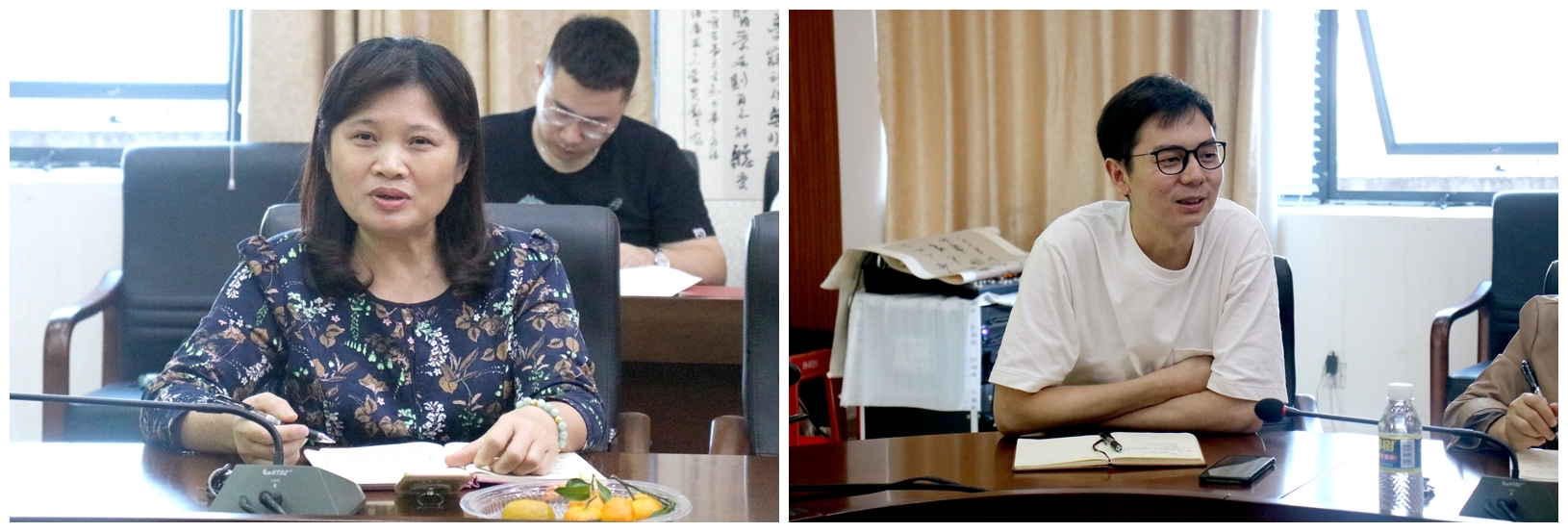 △英语系副主任张清萍(左)、英语系团总支书记冯琛(右)现场解答学生疑问