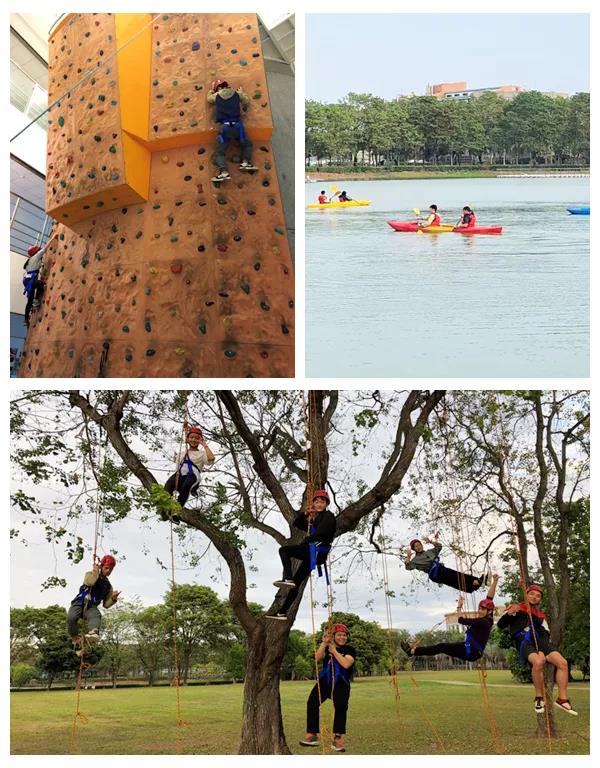 为缓解几天来的紧张学习氛围,12月20日下午,台湾明道大学休闲保健学系的老师指导我院学生体验了《划船》、《攀岩》、《攀树》等课外运动课程,让同学们感受到台湾明道大学丰富多彩的体育运动项目带来的乐趣,也让我院学生意识到提高体能的重要性。